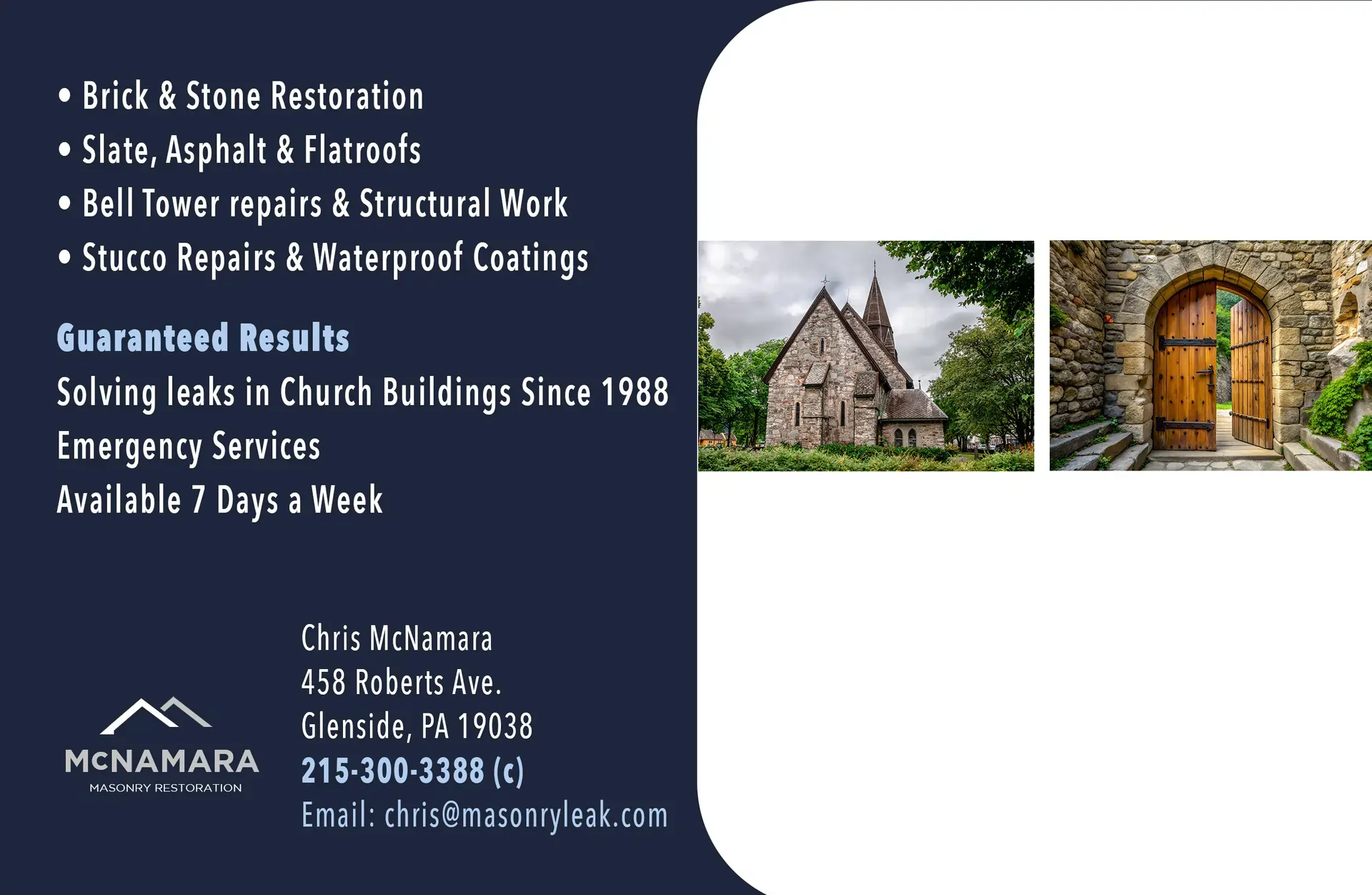 If you’re in need of expert masonry restoration services in Fort Washington, PA, Northern Liberties, PA, Horsham, PA, Norristown, PA and surrounding towns, look no further than McNamara Masonry Restoration. With over 20 years of experience, a comprehensive range of services, and an unwavering commitment to customer satisfaction, we are your trusted partner for all your masonry restoration needs. Contact us today to schedule a consultation and experience the McNamara Masonry Restoration difference for yourself.